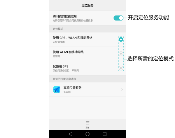 使用 Wi-Fi 和移动网络:仅通过网络进行定位,可适当降低耗电量,延长待机时间。