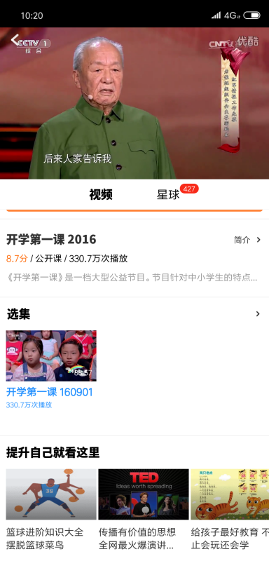 你在手机可以利用优酷观看《开学*课》,具体方法如下: