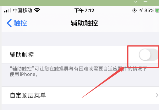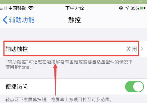 5、将“辅助触控”后面的开关开启。