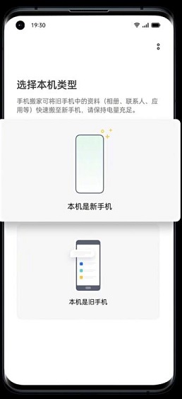 2、打开手机克隆后,根据提示选择新旧设备类型。