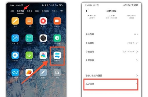 1、在桌面“系统工具”文件框中,打开小米换机APP。