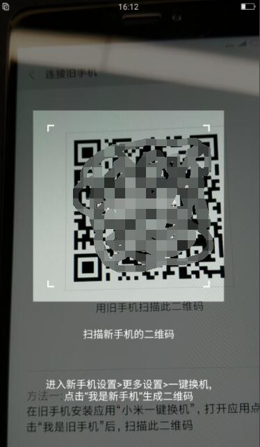 3、旧手机会出现扫描二维码的框,而新手机则是一个二维码,用旧手机扫描新手机的二维码。