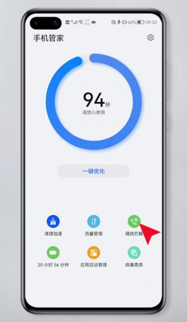 第一步打开手机管家,点击骚扰拦截