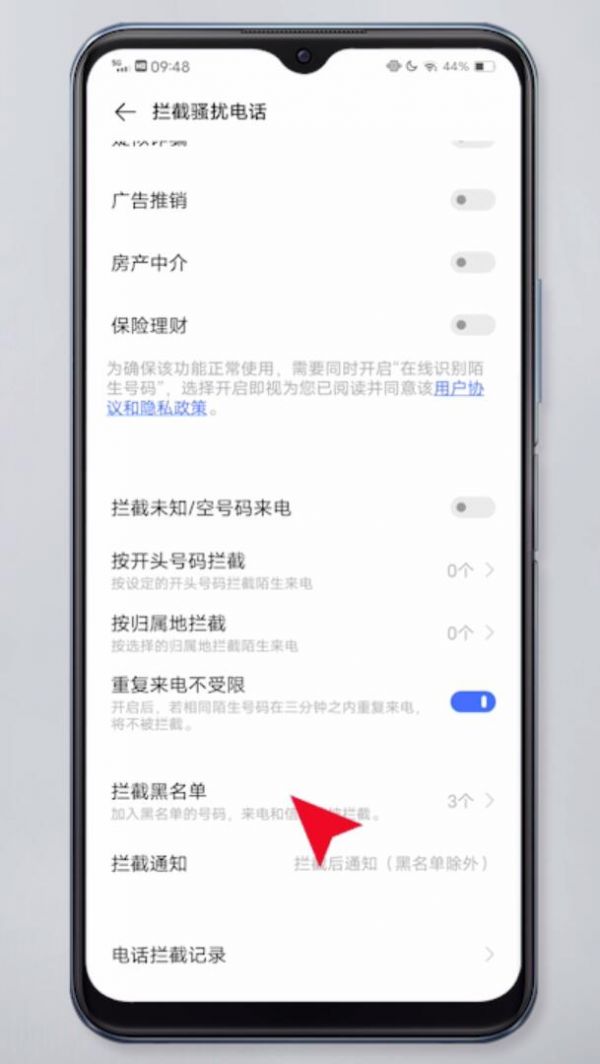 打开拦截黑名单即可