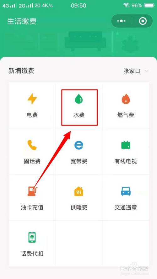 就这就会看到下面一栏有生活缴费这几个字,点进去点击水费。