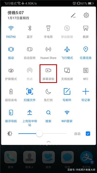 具体操作步骤:打开华为手机的下拉通知栏,找到【屏幕录制】,直接点击,即可进行录屏。