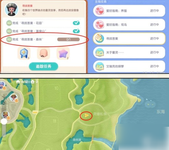1、玩家首先需要接到主线任务寻找答案,并完成“寻找答案·森林”这一部分。而后遵循任务指引,来到地图的如下位置: