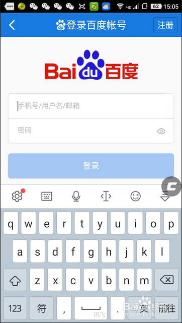 手机上面安装百度云之后,首先进入百度云,然后再进入注册一个百度云帐户,并且登录帐户。如下图所示: