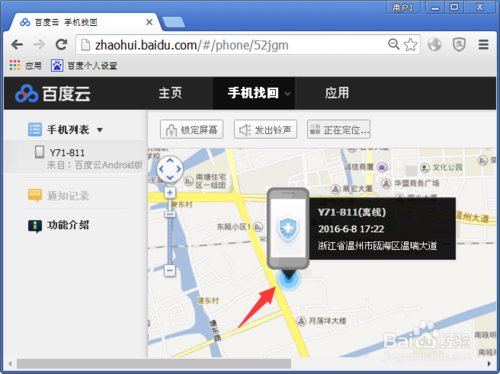 百度云启用定位以后,状态就会呈现为绿色,说明定位已经开启了,我们再进入http://yun.baidu.com/百度云官网的中心去查询一下定位状态,登录百度云账户,在百度云页面的左侧栏目选择手机找回进入。