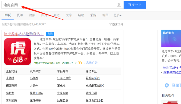 1、打开浏览器,输入”途虎官网“。
