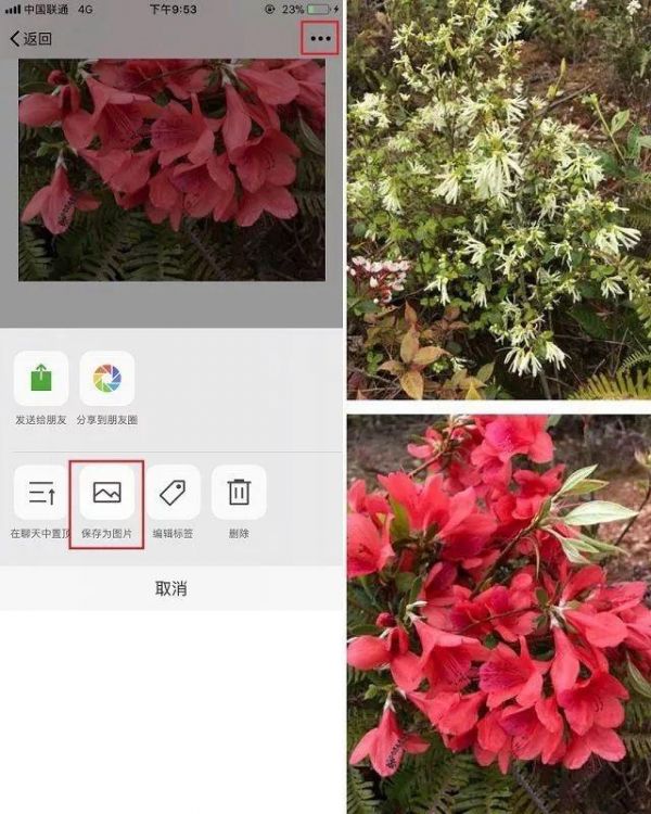 2、插入多张需要拼接的图片之后,点击右上角的「...」,然后在底部的弹出选项中,点击「保存为图片」,保存成功之后,长拼图就好了,我们可以在手机相册中找到,如图所示。