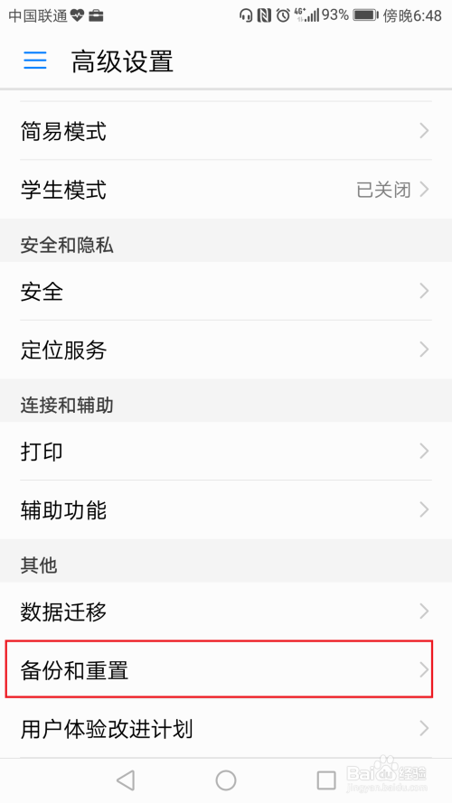 向下滑动*设置页面,找到“备份和重置”;