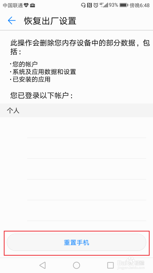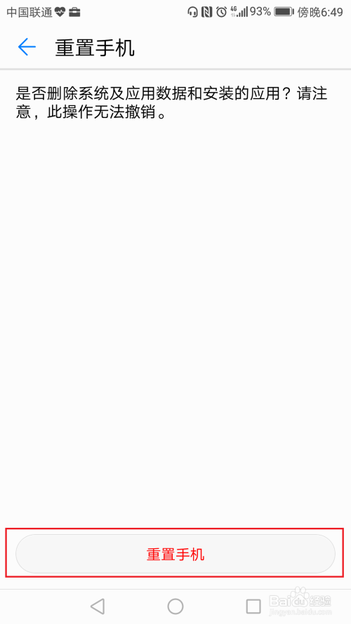 自动跳转到重置手机界面,点击“重置手机”按钮。