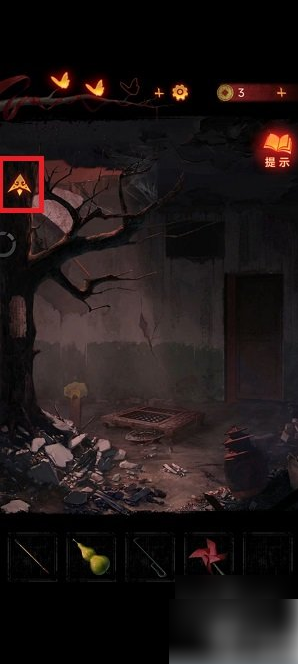 那么大家也可以看到了,纸嫁衣5第四章这里的爬树方法其实也很简单,只要大家找到树左上方的黄色箭头按钮,然后按一下这个按钮,就可以顺利的爬到树上切换场景并继续游戏了。