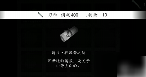 最后用换来的刀币向游戏里的npc购买妻子的情报,然后会过一段剧情,该章节也就结束了
