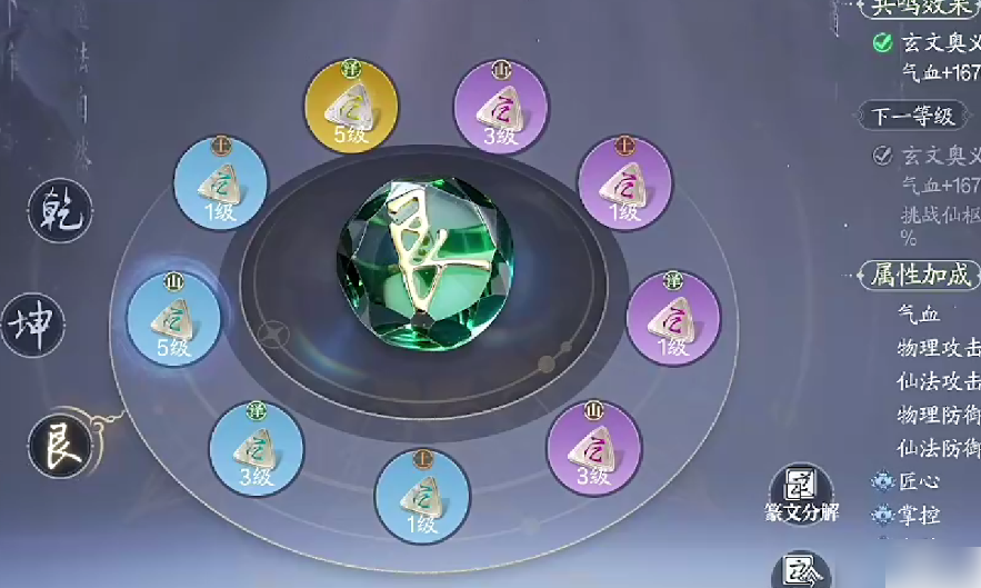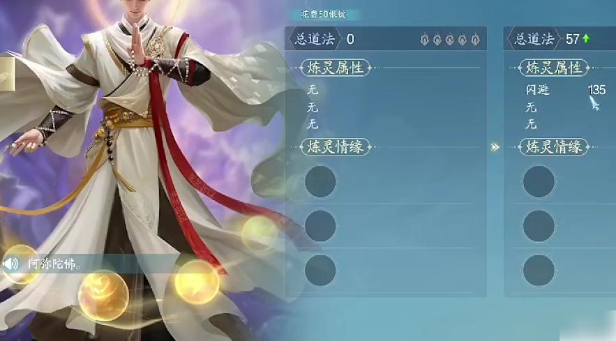 在游戏当中提升道法的手段总共有三种,第一种是直接提升自身的阵灵系统,阵灵可以通过抽卡来获取,每次抽卡获取一个新阵灵时,玩家的阵列系统,都会激活一个战斗力提升单位,不同的阵灵组合,会触发不同的攻击效果提升,例如,当玩家触发了情缘效果,可以提升整体的攻击力数值,以及气血数值。