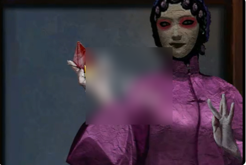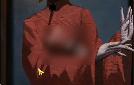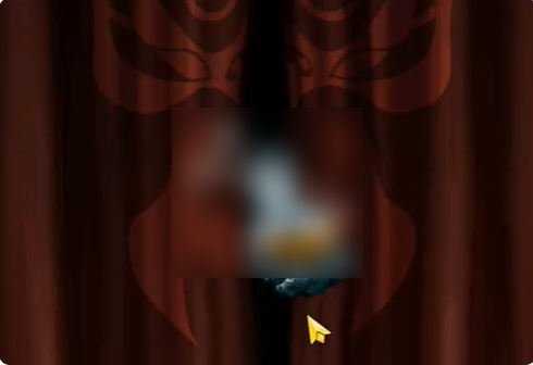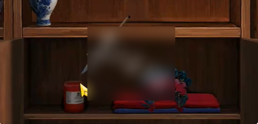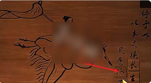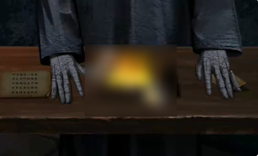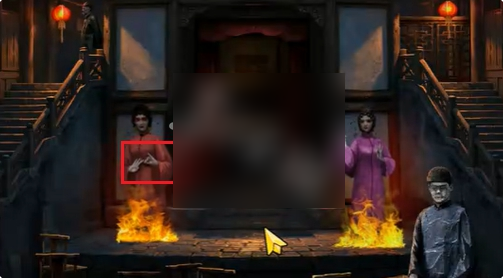 2、点击红色帘子,将纸元宝放在图中的手上。