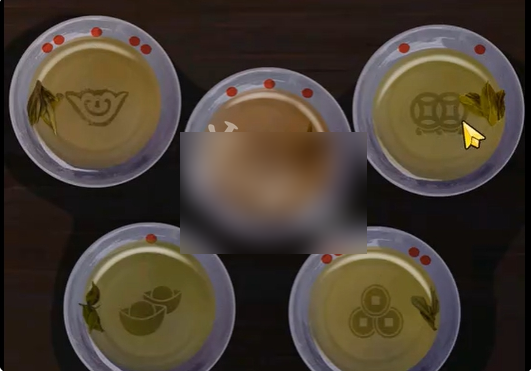 12、将茶叶撒在五个碗上,然后点击茶壶进行倒水。