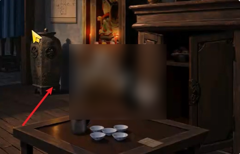 8、切换至门外场景,将纸钱放在铁盒中,就能获得戏票。