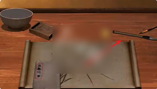 4、依次点击桌子上的书和毛笔。