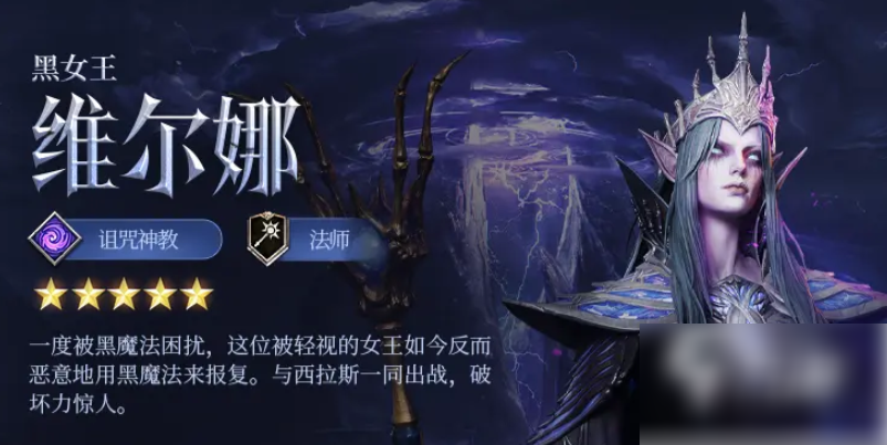 维尔娜是一位法师,破坏力相当惊人,她的普攻可以对最多五名敌人造成100%的伤害并对目标附加一层沙蚀,她的终结技会对范围内的敌人造成600%的伤害,并且对其施加禁疗效果,她还有三个被动,被动一是每过五秒就根据自身范围内敌人携带的沙蚀层数,对他们附加减速,她的被动二会在普攻范围内拥有三层沙蚀的敌人死亡时,自动对其周围的另一个附加两层沙蚀,这个效果最多每8秒触发一次,她的被动三会在英雄图鉴激活西拉斯后,每秒恢复一定比例的生命值。