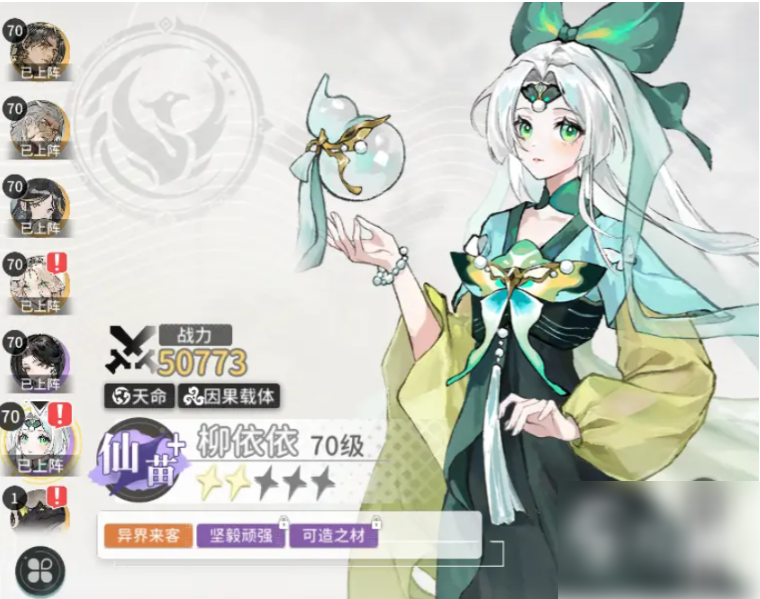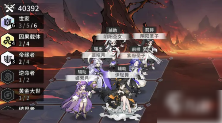 世家阵容成员如下图所示,这一套激活了世家羁绊,能在我方修士获得增益时,让属性提升,该阵容养成会比较困难,3个SR都比较依赖星级,比较适合去打PVP,队伍中技姬皓月是核心输出;