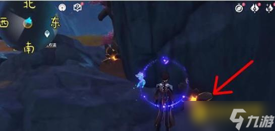 3、接着来到对对面的位置,在岩石下方也有一个星星岩需要打碎;