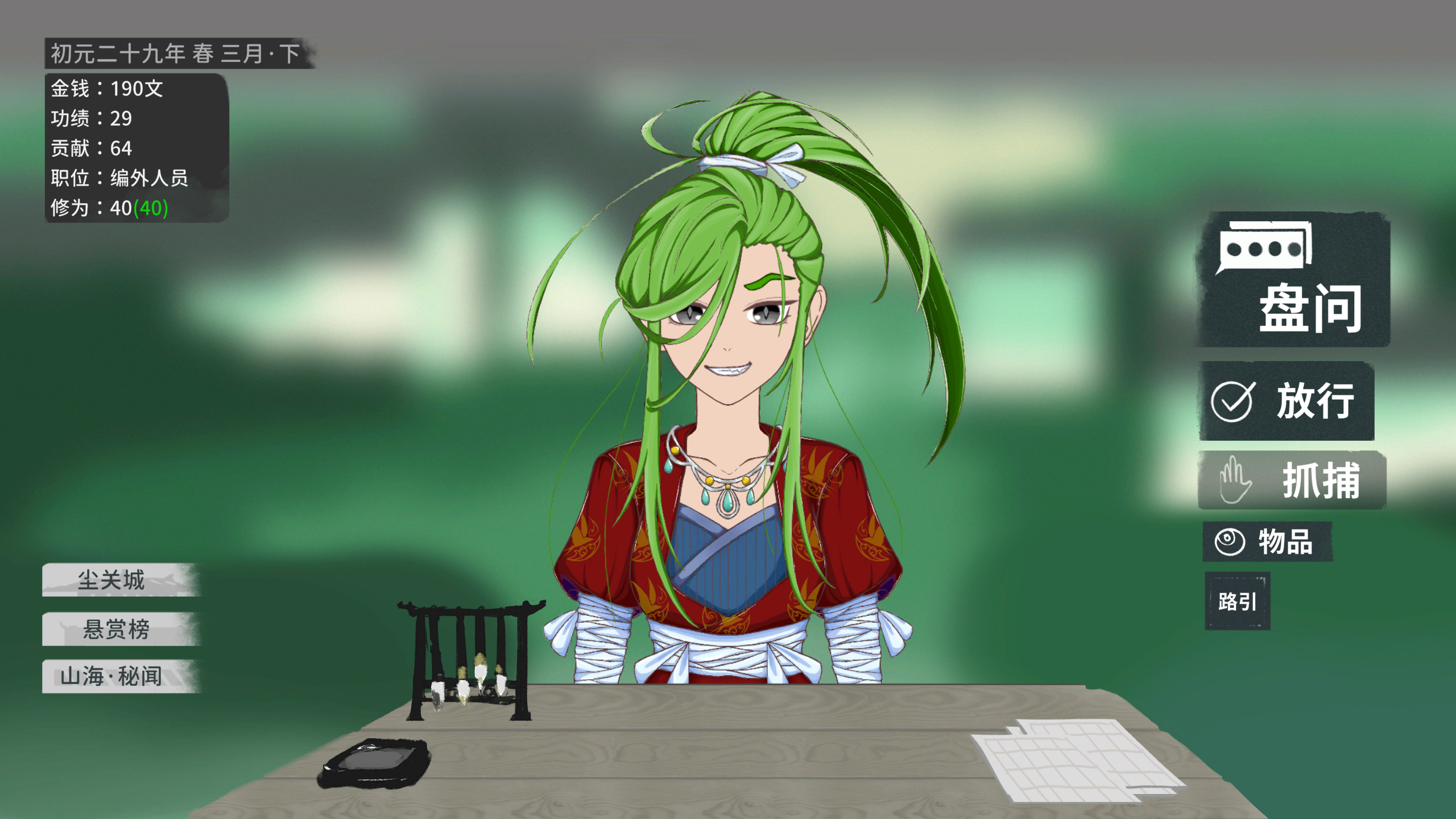 你身为新任山海司见习守门人,立于九州风云交汇之地——这里是胤朝治下的城池白日人潮涌动,商旅修士络绎不绝;入夜妖气弥漫,百鬼披人皮伺机而动。你的使命:执掌城门,洞彻虚实查验每一个过往的行人,确保不会有行迹可疑的邪修或妖物进入城中!狡诈的敌人精于伪装,破绽稍纵即逝——或藏于外形细微的异样,或隐于言语间的逻辑裂隙。你需明察秋毫,善用诸般道具,方能识破层层伪装,守护城池安宁。类型各异的“可疑者”遭遇千奇百怪的邪修与妖物:或伪装天衣无缝,唯言语可寻蛛丝马迹;或诡计多端,却在外形上露了马脚。丰富的事件和选择你的判断将引动风云。一个疏忽,或致城池万劫不复;一次明断,亦可能悄然改变他人命运轨迹。不同的选择,导向迥异的游戏进程与多重结局。天赋和城池选择独特初始身份与天赋,开启专属的守门人体验。驻守风格各异的胤朝城池,面对不同的风土与挑战。职责之外:悬赏缉凶: 精准辨识榜上要犯,缉拿归案。秘闻奇案: 处理山海司秘闻下的特殊守门事件,应对超乎想象的危机。
