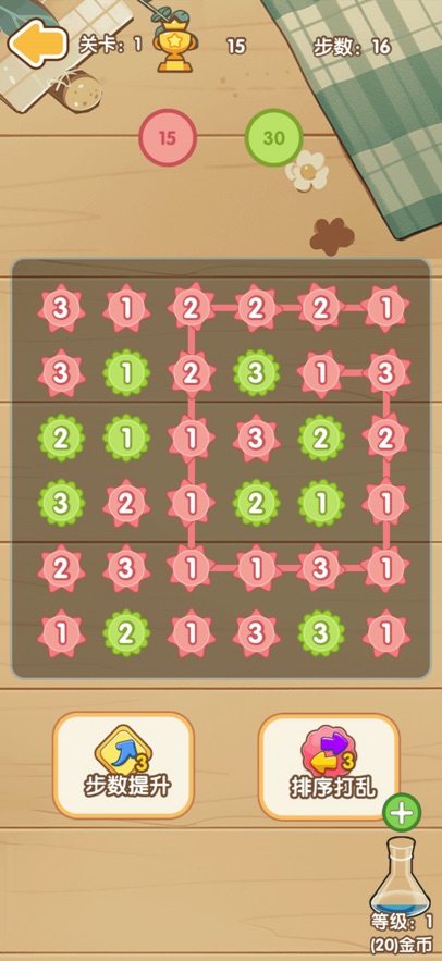 踏入《幸福花开:温馨休闲时光》的世界,仿佛置身洒满阳光的花园,每一次指尖互动都藏着治愈的小确幸。进入游戏后,6*6 的花朵矩阵即刻铺展,粉嫩、明黄、浅紫等各色花朵错落其间,每朵花芯都嵌着专属数字 —— 只需滑动手指,将 3 朵及以上同色花朵连成一线,就能触发花朵消散的柔美动画,同时累计每朵花的数字得分。当得分达到当前关卡要求,就能顺利解锁下一关,开启新一轮与花朵的温柔邂逅。