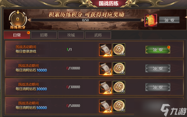 每日必做:完成攻城/招募/养成三类任务,领材料冲官职排名