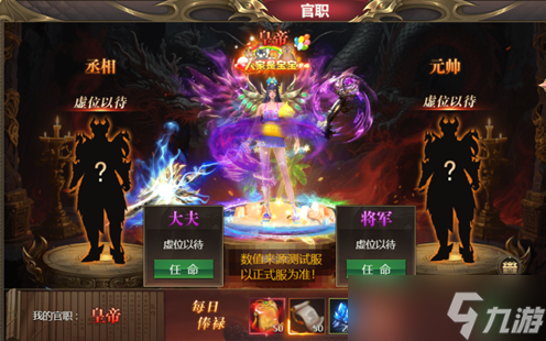 实时战力决定皇帝/丞相/元帅职位,每日领取钻石俸禄