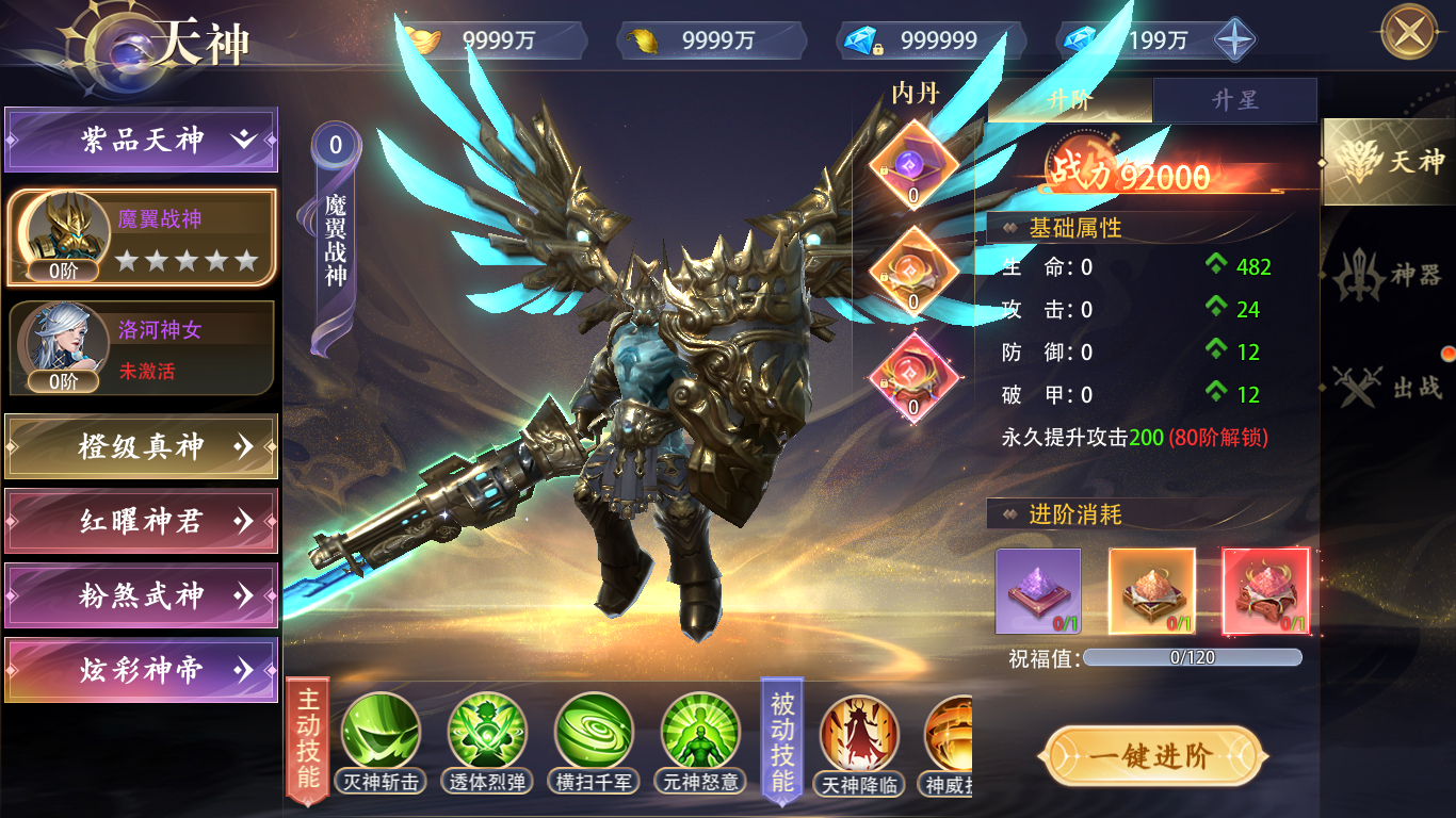 使用天神精华可以增加天神祝福值,祝福值满后天神升级。