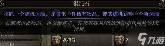 混沌石 (Chaos Orb) ,简称C 。基础计价通货,主要用于交易 常用物品。