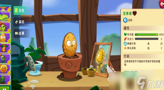 坚果墙最大的特点就是血量非常的高了,它的血量已经达到了4000点,在众多植物中,坚果墙绝对是最能抗主僵尸攻击的植物,而防守反击这个技能在使用以后,能够使它在回复自身血量的同时还能给自身套上护盾,让它成为坦克型植物中最亮的崽。