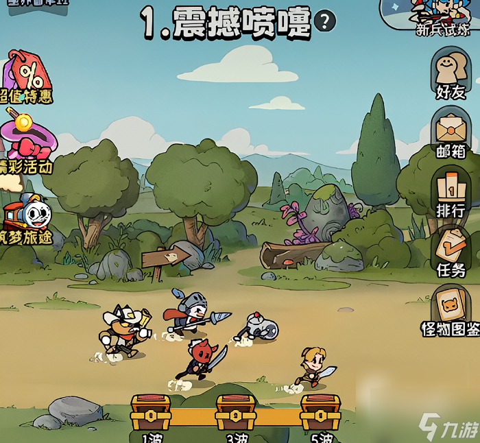 首先大家需要做的是搭配一套阵容,需要在开局前找三位英雄搭配一套初始队伍,在这套的搭配中大家需要需要高品质的英雄大卫,这类英雄单位可以通过招募和首充奖励获取,这招募先不看,大家需要先去看首充奖励,通过首充是可以拿到一位神话品质的英雄的,这英雄在现在这阶段很好用,是我们可以免费拿到的最好用的核心单位。