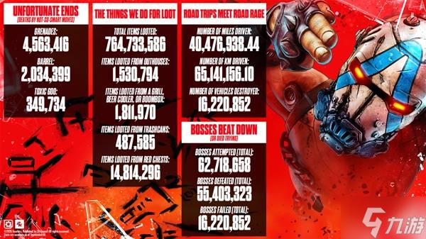 在周末,《无主之地4》社区创造了一些令人印象深刻的统计数据,包括: