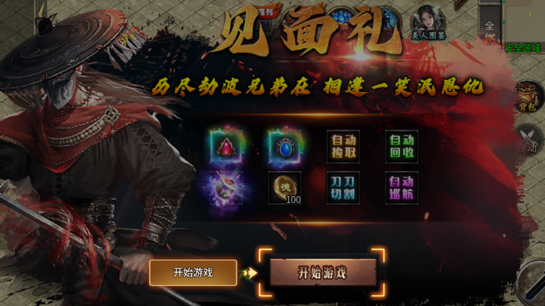 1.上线即送豪华见面礼,自动拾取、自动回收、刀刀切割、自动巡航,各种材料道具、起手福利拉满。