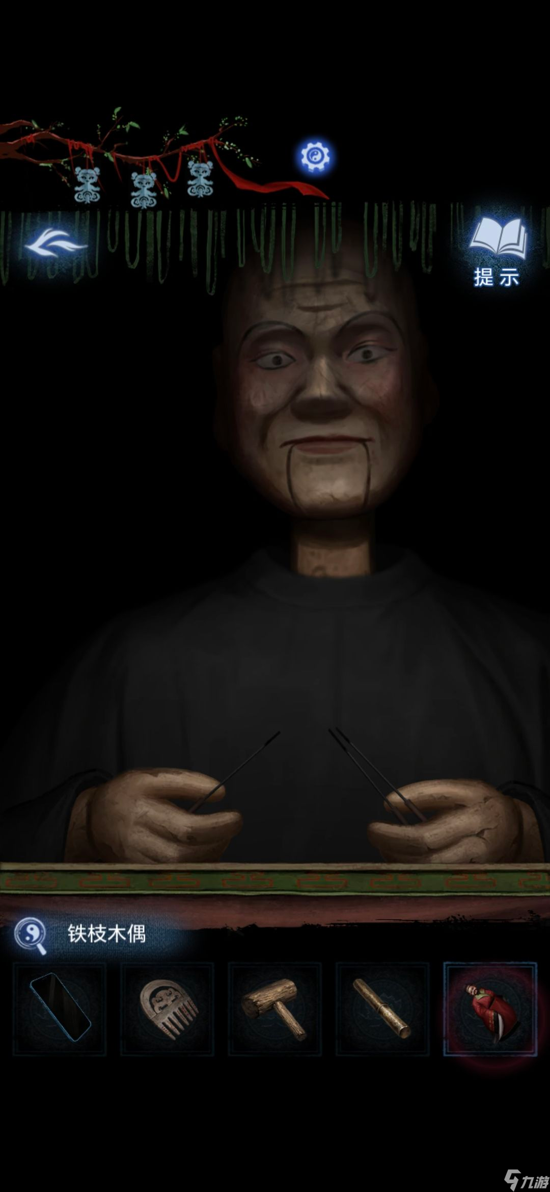 用卍字戒指和太极戒指打开寺庙里的箱子,获得铁枝木偶