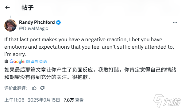 他指出,相信“不超过推荐配置的 PC 仍能在帧数、分辨率和画质上做到全面兼顾”是一个“错误”。同时,他补充说:“如果这让你感到负面情绪,那我相信你有自己的期望未被满足,对此我感到抱歉。”