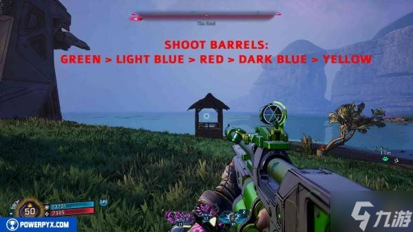 位置在【隐没旷野-嚎叫森林】,就在此区域西北角与海岸骨境的交界处,地图边缘的水域旁可以看到一座小亭子,周围有彩色木桶,按照【绿-浅蓝-红-深蓝-黄】的顺序射击木桶,随后帕特丽夏·坦尼斯博士的影像就会在海面出现。