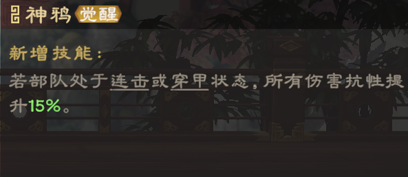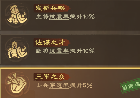 佐谋之才:提升副将抗震率,降低副将爆发技能时被反震的伤害
