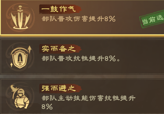孙权在40级天赋选择“避其锋芒”,来提升部队主动技能抗性,来更好地应对技能骑。