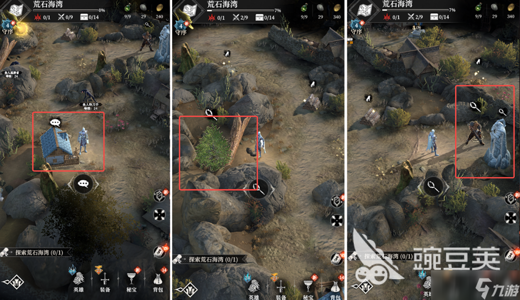 在荒石海湾中玩家先跟小屋对话,对完话之后就需要进行搜索,通过搜索玩家将会获得大量的基础资源。这些基础资源玩家需要先收藏着。毕竟它能够为后续的探索提供基础条件,之后玩家来到了荒石海湾的入口处,此时玩家面临的任务就是砍伐,一旦砍伐30次以后,玩家将会获得归处之种,这个作为关键性的道具,为后续的解锁隐藏的剧情跟任务有很重要的关系。其实在探索的时候玩家不要忘了英雄雕像,玩家只需要触发之后将会面临两个选择。这两个选择虽说不能够决定生死,但是对于玩家所获得的资源会有不同的区别。