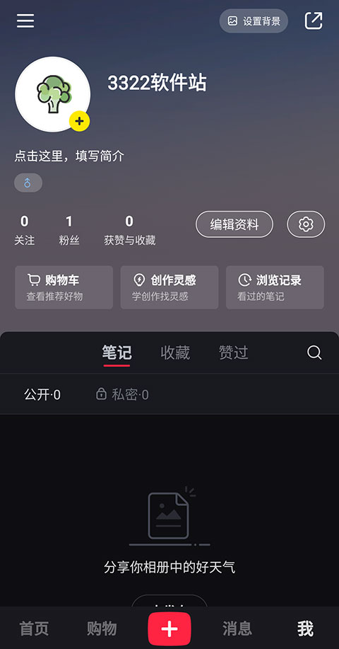 1、进入小红书app我的页面,点击编辑资料旁边的【齿轮图标】。