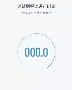 2、进入体脂称绑定页面,将秤放在平稳的地面,双脚站到秤上进行绑定即可。