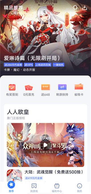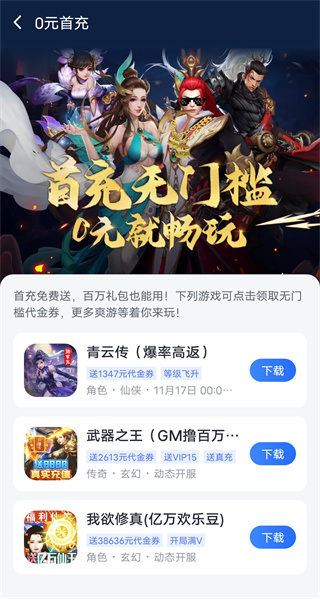 也可以进入【0元首充】,里面都是免费送首充的游戏。
