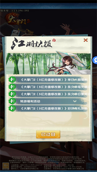 让我们进入游戏中来看一看,小编选择的是优惠排行榜第一的大掌门2(5亿充值修改器),一进入游戏,对味了,不是标题党,是真的BT版手游。