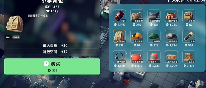 然后玩家需要完成任务造出防具店,可以买到初期背包,小学背包