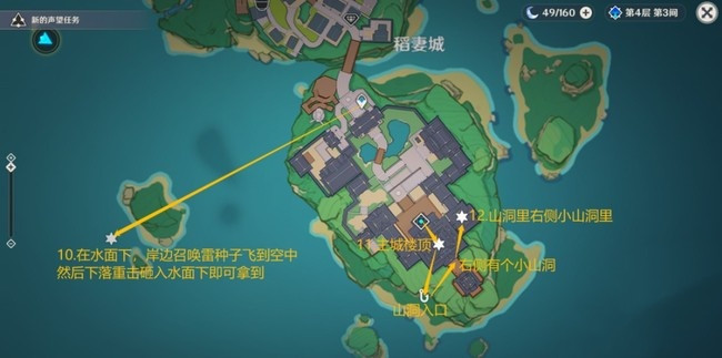 10:在水面下,岸边召唤雷种子飞到空中然后下落重击砸入水面下即可拿到