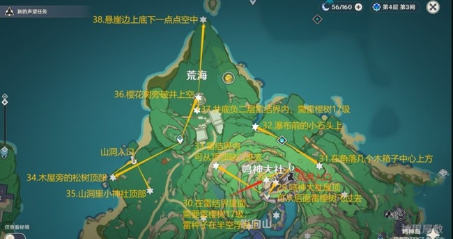 鸣神岛一共38个雷神瞳,有两个在雷结界内,需要雷樱树17级才能进入。